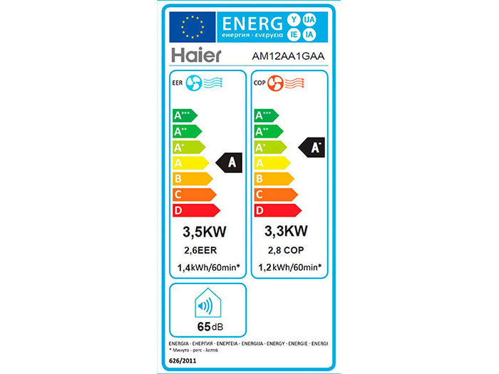 Energy Efficiency: Class A (Cooling), EER: 2.61, COP: 2.75