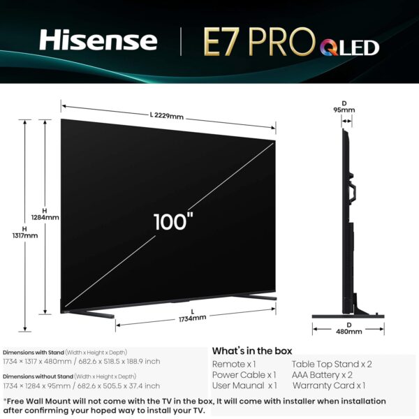 Hisense 100E7Q PRO 100″ 4K QLED Smart TV Wi-Fi