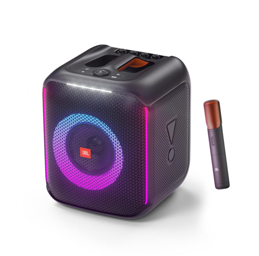 The portable JBL PartyBox Encore speaker gives you 10 hours of non-stop fun. With the easy grab-and-go handle and splash proof design, you can always take the party with you. Get the beat pumping with amazing JBL Original Pro Sound and deep bass. Sync the lightshow’s rockin’ strobes, ring and club lights for an awesomely immersive experience or sing along with the JBL premium digital wireless mic, optimized for karaoke with adjustable echo, bass, and treble. True Wireless Stereo means you can even pair speakers for truly massive sound. And with the PartyBox app, you can always control your music and your lightshow colors for the perfect vibe.