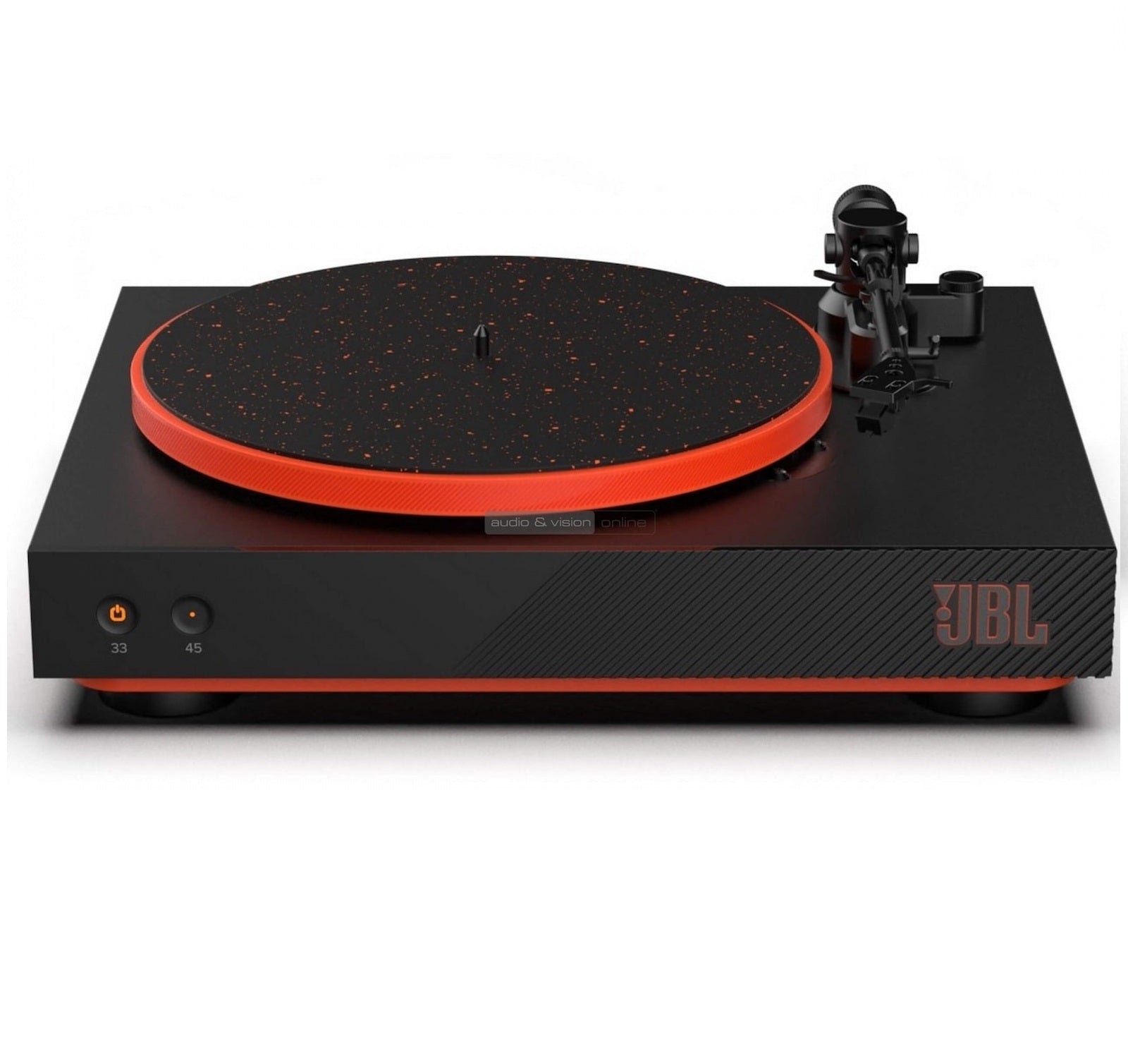 The Aluminum platter is driven by a belt drive and motor with an optical sensor underneath to ensure your records are played perfectly in time at 33.3 rpm for albums, or 45 rpm for EPs and singles.